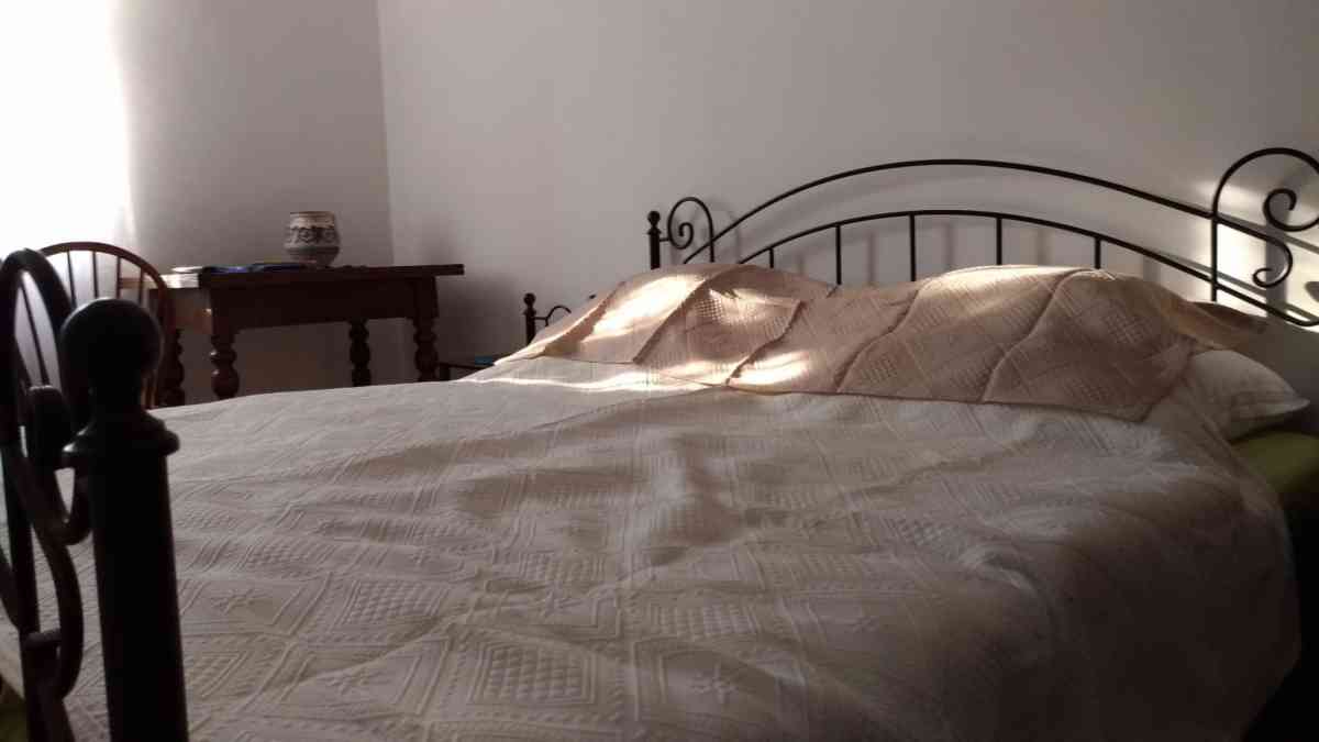 Az elsőben helységben: 2 ágy, szekrény, éjjeliszekrény van elhelyezve