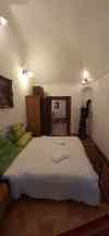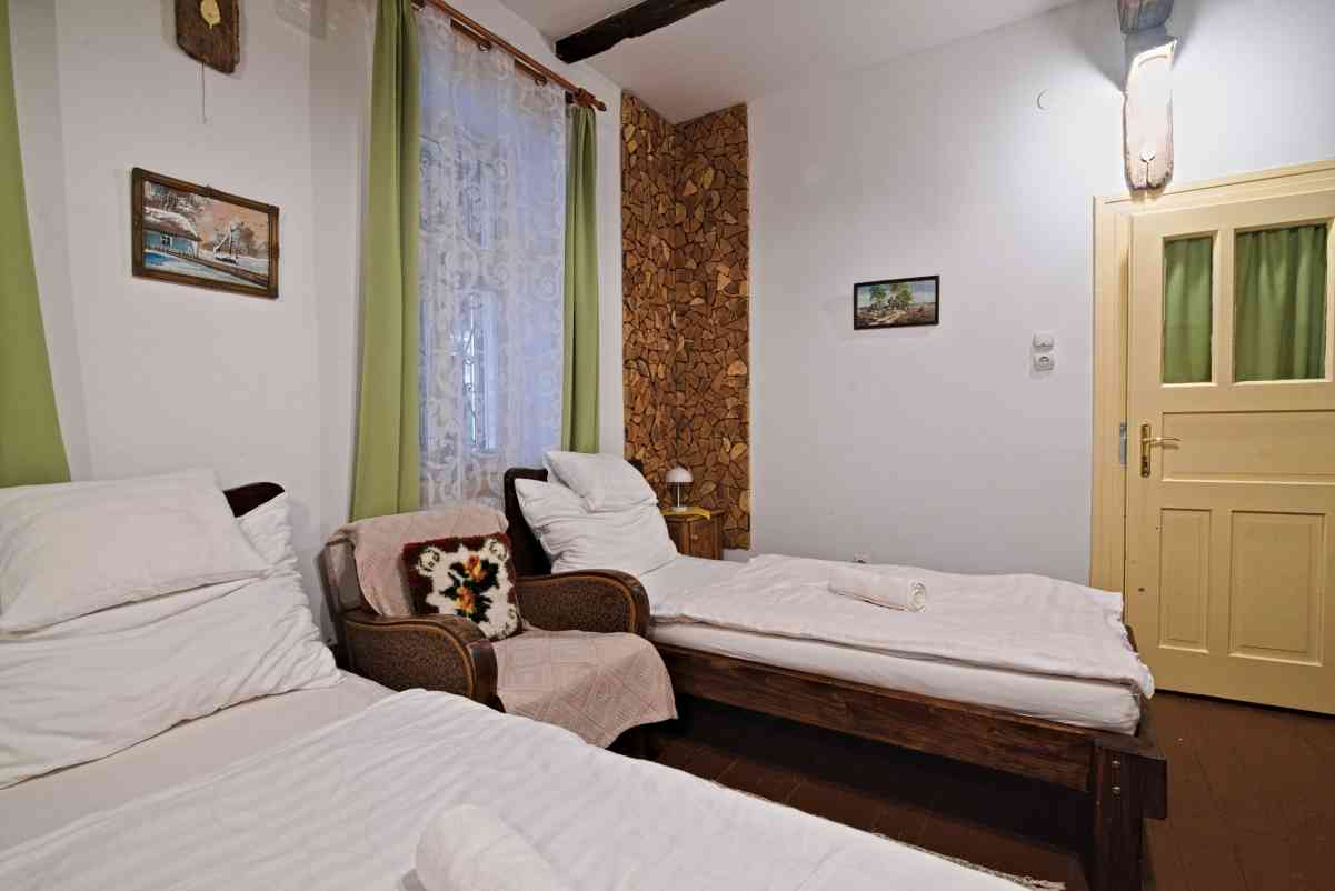 Ez a szoba 2 fő elszállásolására alkalmas (francia ágy). Az előterében található a vizesblokk, és két átjáró ajtó, ami külön kérésre egybenyitható a másik lakrésszel a Gerendás és a Cserepes szobával! Ablakából az utcafontra tekint.